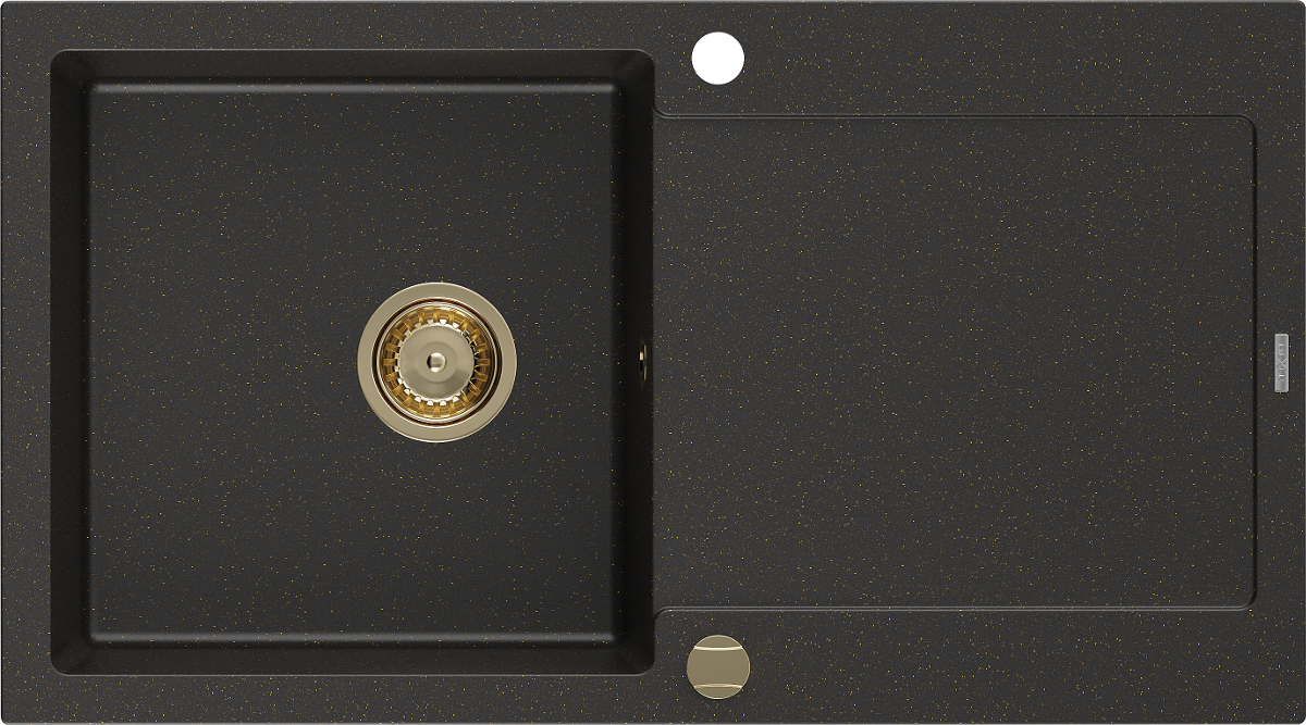 Mexen Leo grindinis akmens kriauklė su vienu dubeniu ir nusausinimo vieta, 900 x 500 mm, juoda/auksinė metalo spalva, aukso