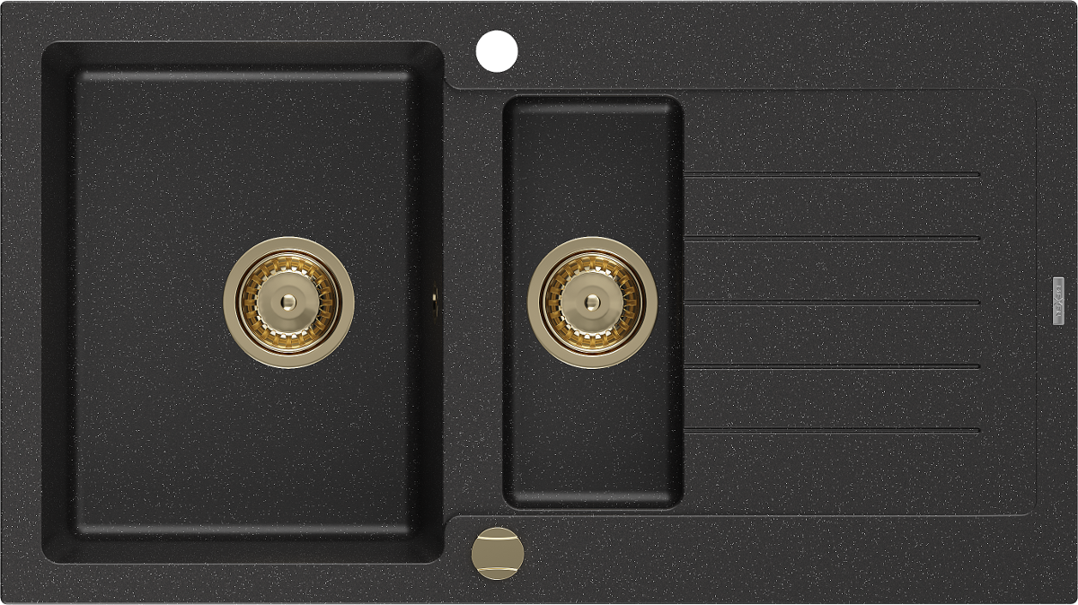 Mexen Matias granitinis plautuvės 1,5 skylių su lašintuvu 900 x 505 mm, juoda/sidabrinė metalikas, sifonas auksinis - 650290150?