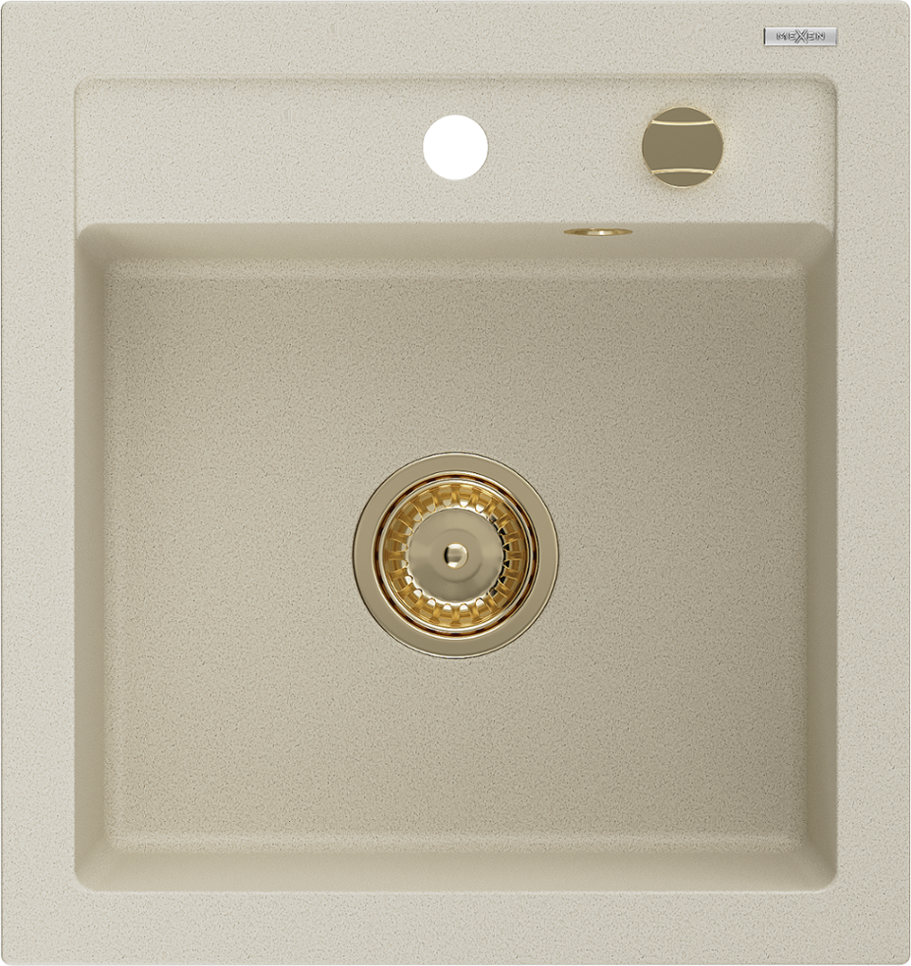 Mexen Vito granitinė plautuvė su viena kamera 520 x 490 mm, smėlio spalvos, aukso sifonas - 6503521000-69-G