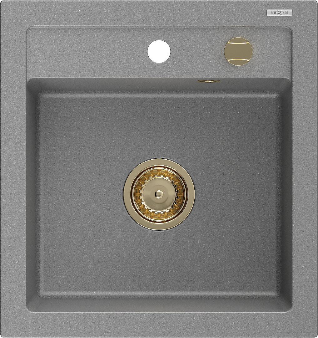 Mexen Vito granitinė vienos kameros plautuvė 520 x 490 mm, pilka, auksinė sifono apdaila - 6503521000-71-G