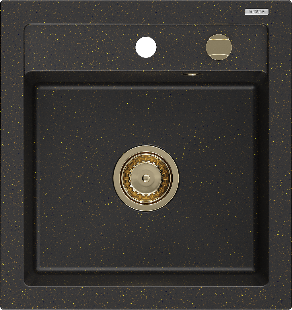 Mexen Vito granitinė vienos plautuvės kriauklė 520 x 490 mm, juoda/auksinė metaliko, auksinis sifonas - 6503521000-75-G