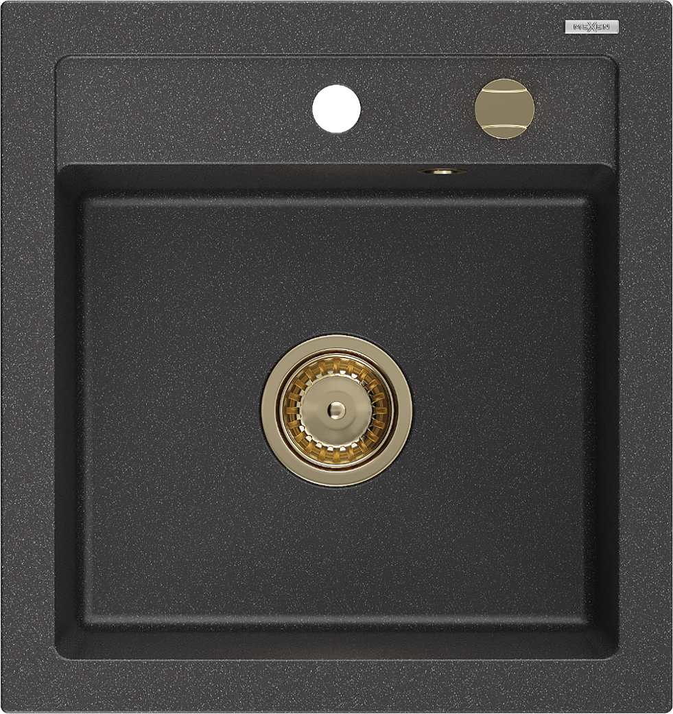 Mexen Vito vienos kameros granito kriauklė 520 x 490 mm, juoda dėmėta, auksinė sifono apdaila - 6503521000-76-G