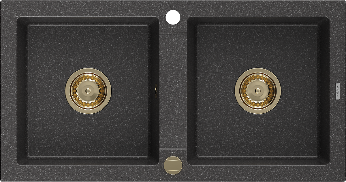 Mexen Mario granitinė dviejų skyrių plautuvė 820 x 436 mm, juoda taškuota, sifonas auksinis - 6504822000-76-G