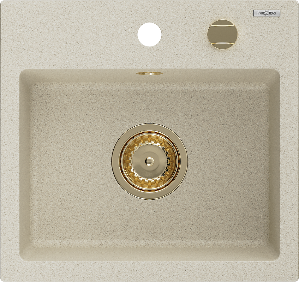 Mexen Milo granito virtuv?s kriaukl? 1 skyrius 435 x 410 mm, sm?lin? spalva, auksinis sifonas - 6505441000-69-G