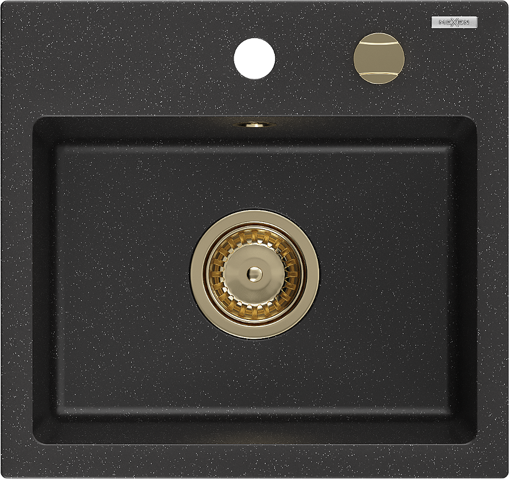 Mexen Milo vienos kameros granito virtuvės kriauklė 435 x 410 mm, juoda/sidabrinė metaliko, sifonas auksinis - 6505441000-73-G