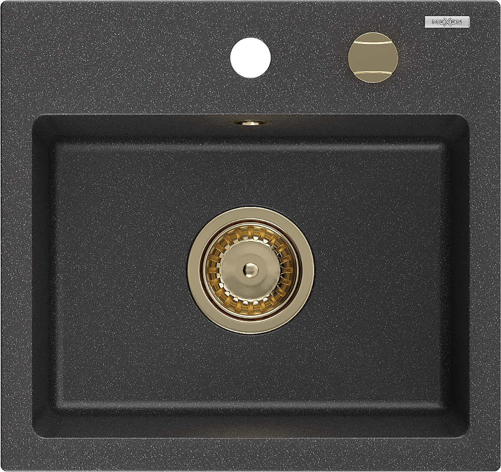 Mexen Milo granito plautuvė 1-dalinė 435 x 410 mm, juoda dėmėta, sifonas auksinis - 6505441000-76-G