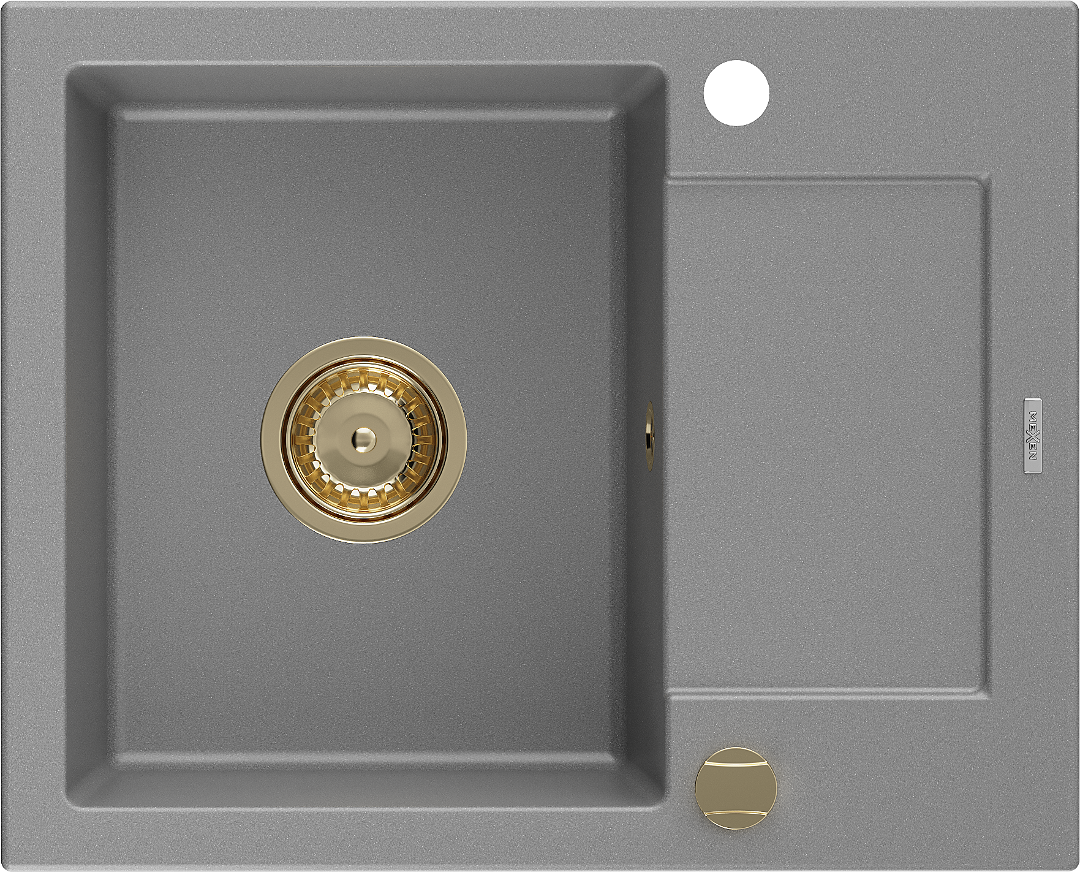 Mexen Enzo vienos dalies granitinė kriauklė su nutekamąja dalimi 576 x 465 mm, pilka, auksinė sifonas - 6506571005-71-G