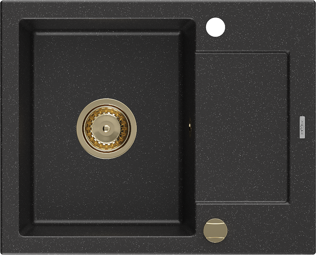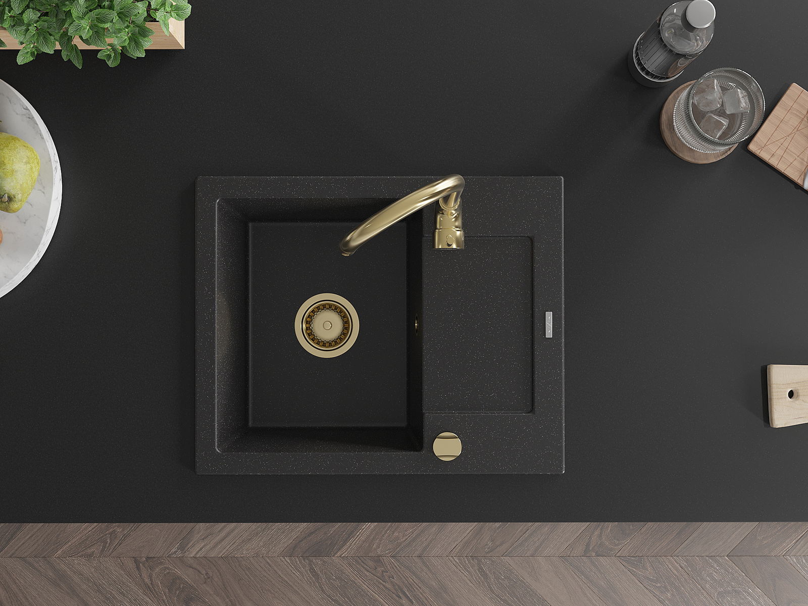 Mexen Enzo granitinė plautuvė su vienu dubeniu ir nuvarvėjimo vieta 576 x 465 mm, juodos/sidabro spalvos metalo atspalvis,