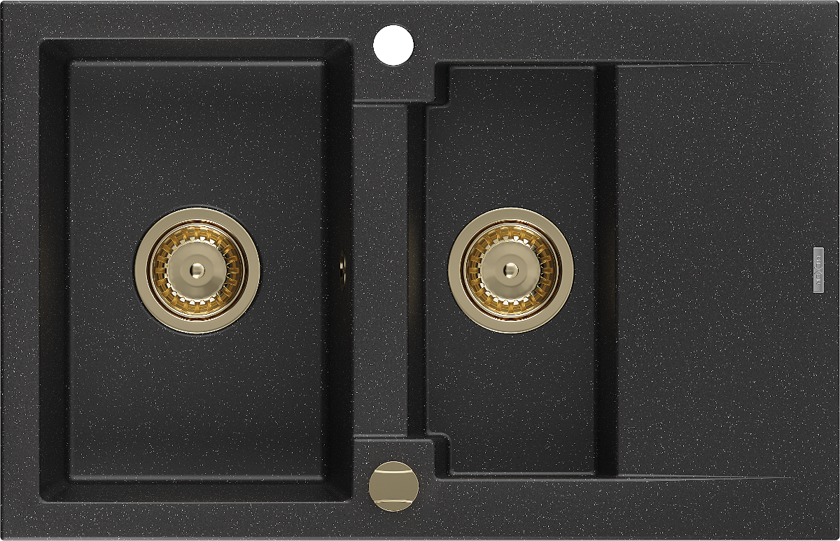Mexen Gaspar granito plautuvė 1,5 kamerų su nuvarvėjimo erdve 737 x 475 mm, juodas/sidabrinis metalo efektas, aukso sifonas - 6?