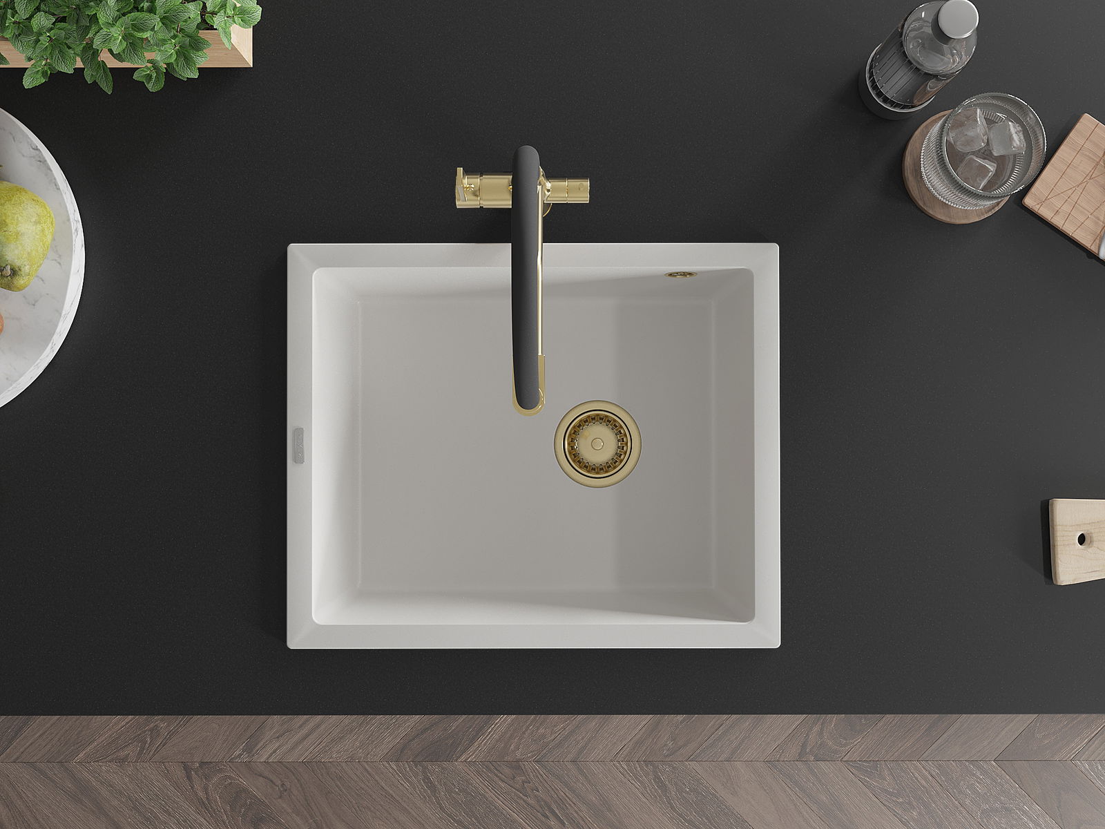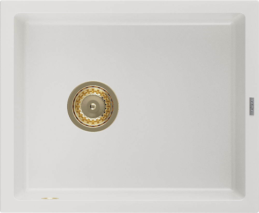 Mexen Pedro akmens masės plautuvė 1 skyrius 560 x 460 mm, baltas, auksinis sifonas - 6508561000-20-G