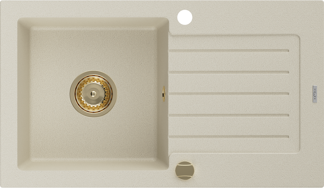 Mexen Pablo granitinis plautuvė vienos kameros su nuvarvėjimu 752 x 436 mm, smėlio spalvos, sifonas auksinis - 6510751010-69-G