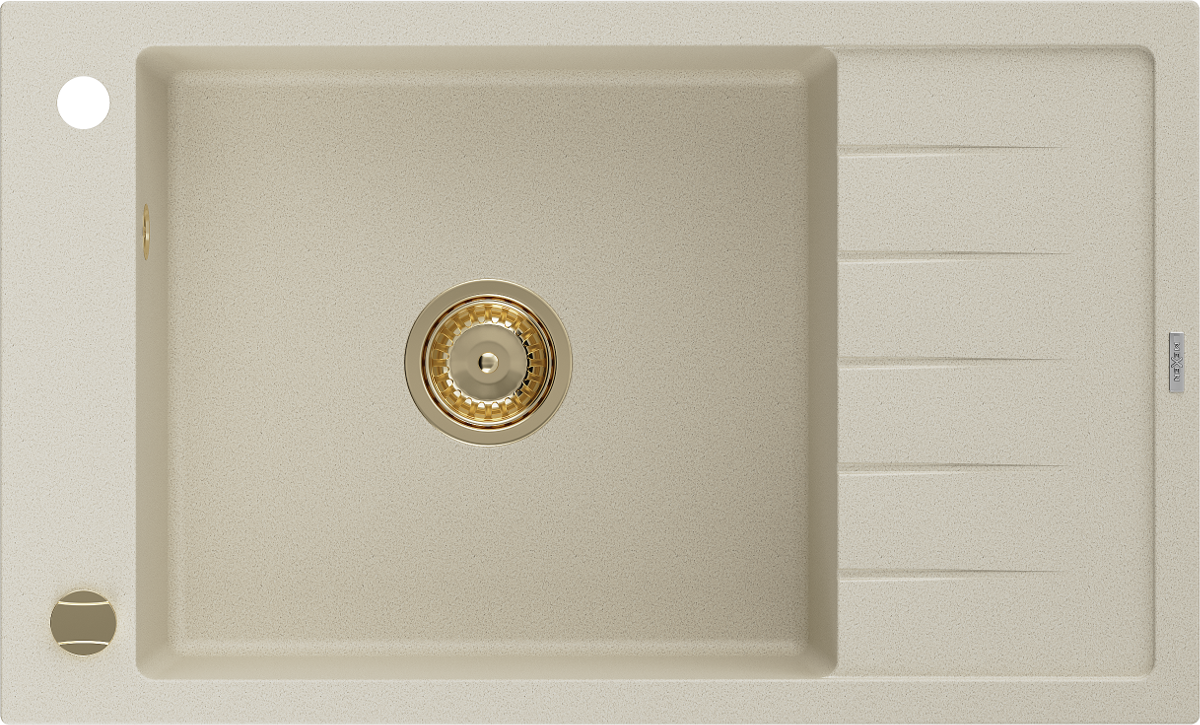 Mexen Elias granitinis kriauklė 1-skyrelis su nuvarvine, 795 x 480 mm, smėlio spalvos, auksinis sifonas - 6511791005-69-G