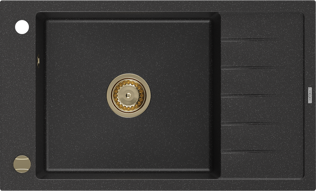 Mexen Elias granitinė 1 skyriumi plautuvė su nusausintoju 795 x 480 mm, juoda/sidabrinė metalika, auksinis sifonas - 6511791005?