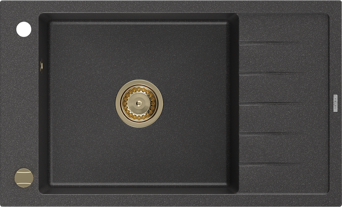 Mexen Elias granitinė plautuvė su viena kamera ir lašektuve 795 x 480 mm, juoda dėmėta, auksinis sifonas - 6511791005-76-G