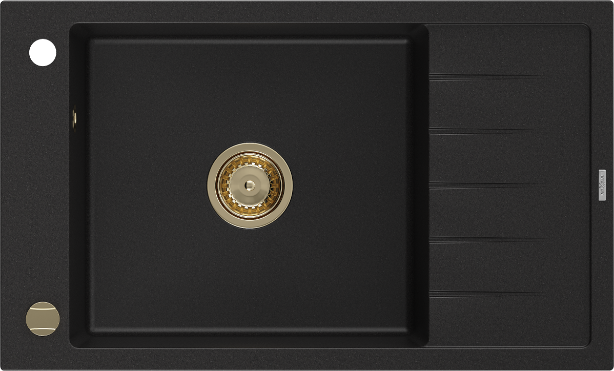 Mexen Elias granito plautuvė 1-dubens su nusausinimu 795 x 480 mm, juoda, aukso sifonas - 6511791005-77-G