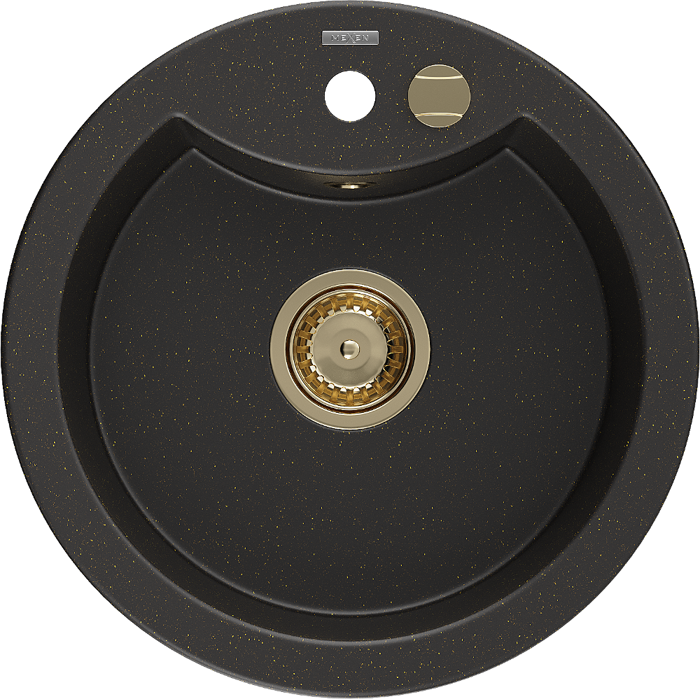 Mexen Diego granito plautuvė, 1 skyrius, 488 x 480 mm, juoda/auksinis metalikas, auksinis sifonas - 6512481000-75-G