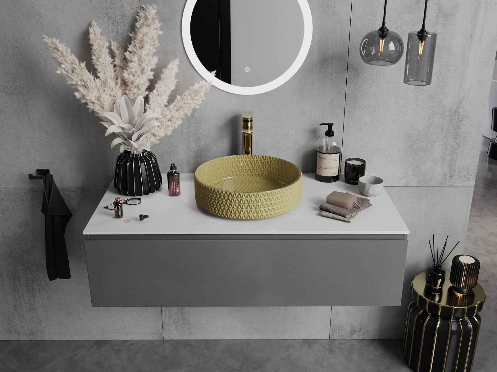 Kriauklė išsiskiria unikalia kristalų struktūra, suteikdama jai unikalų ir ypač efektyvų vaizdą. Kristalai šviečia šviesoje, patraukdami akis ir pridedant elegancijos. Praktinis ir stilingas sprendimas kiekvienam vonios kambariui.