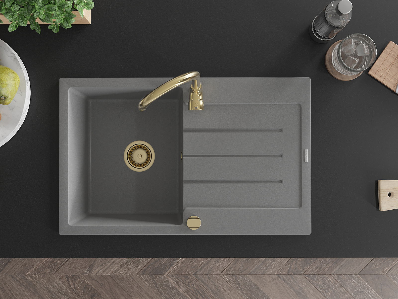 Kriauklės paviršius yra atsparūs dėmėms ir spalvos pasikeitimui, dėl kurio lengva valyti ir ilgą laiką išlaikyti savo spalvą. Estetinis ir praktiškai papildantis kiekvieną virtuvę.