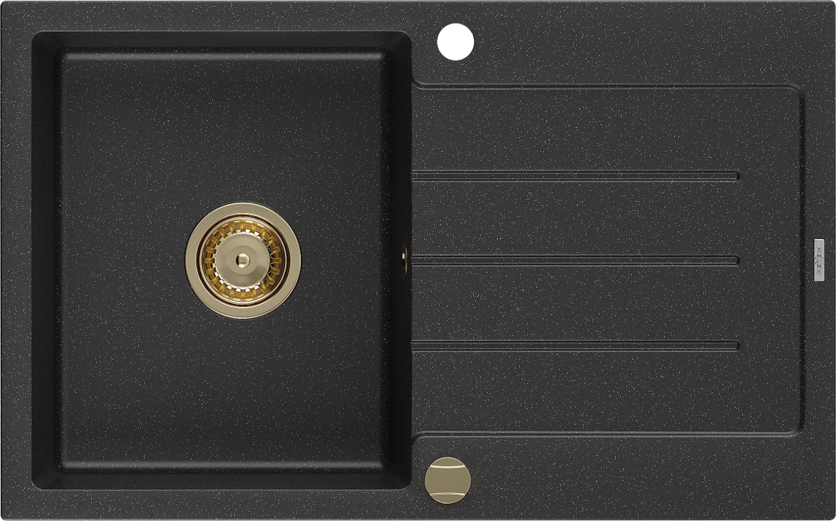 Mexen Bruno granito plautuvė 1-skyriaus su drenažu 795 x 495 mm, juoda/sidabrinis metalikas, auksinė sifonas - 6513791010-73-G
