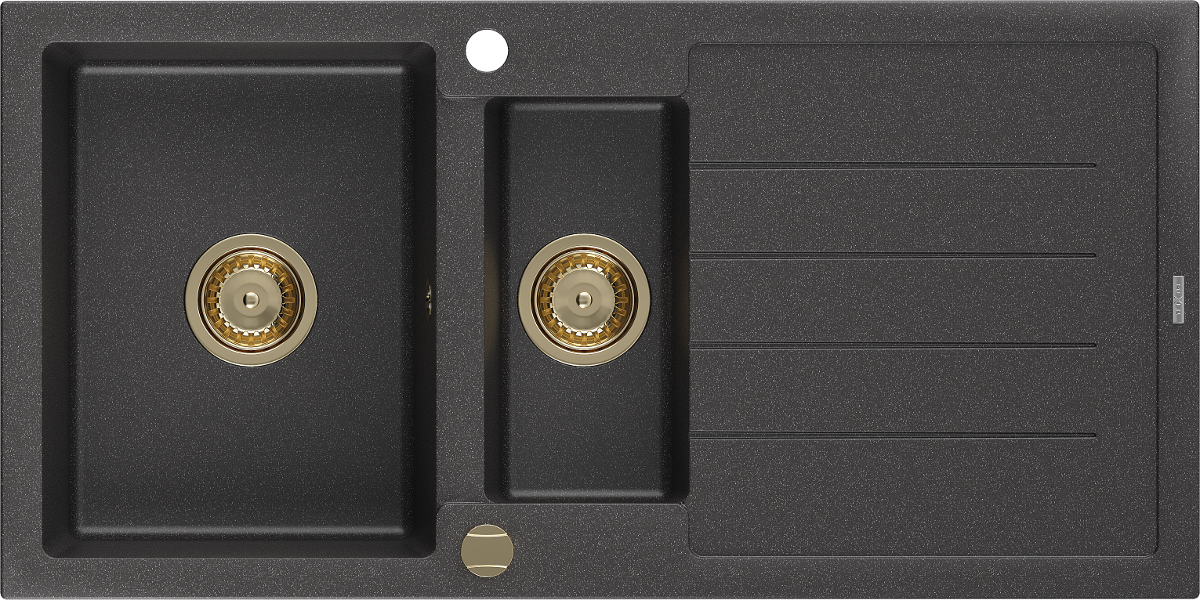 Mexen Andres 1,5 skylių granitinė kriauklė su nutekamu, 1000 x 500 mm, juoda taškuota, aukso spalvos sifonas - 6515101510-76-G
