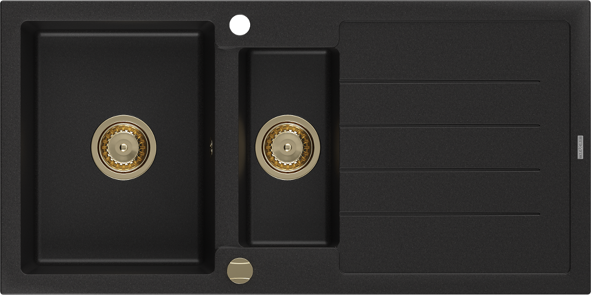 Mexen Andres granitinė 1,5 kamerų kriauklė su nusausinimo skydu 1000 x 500 mm juodas, sifonas auksinis - 6515101510-77-G