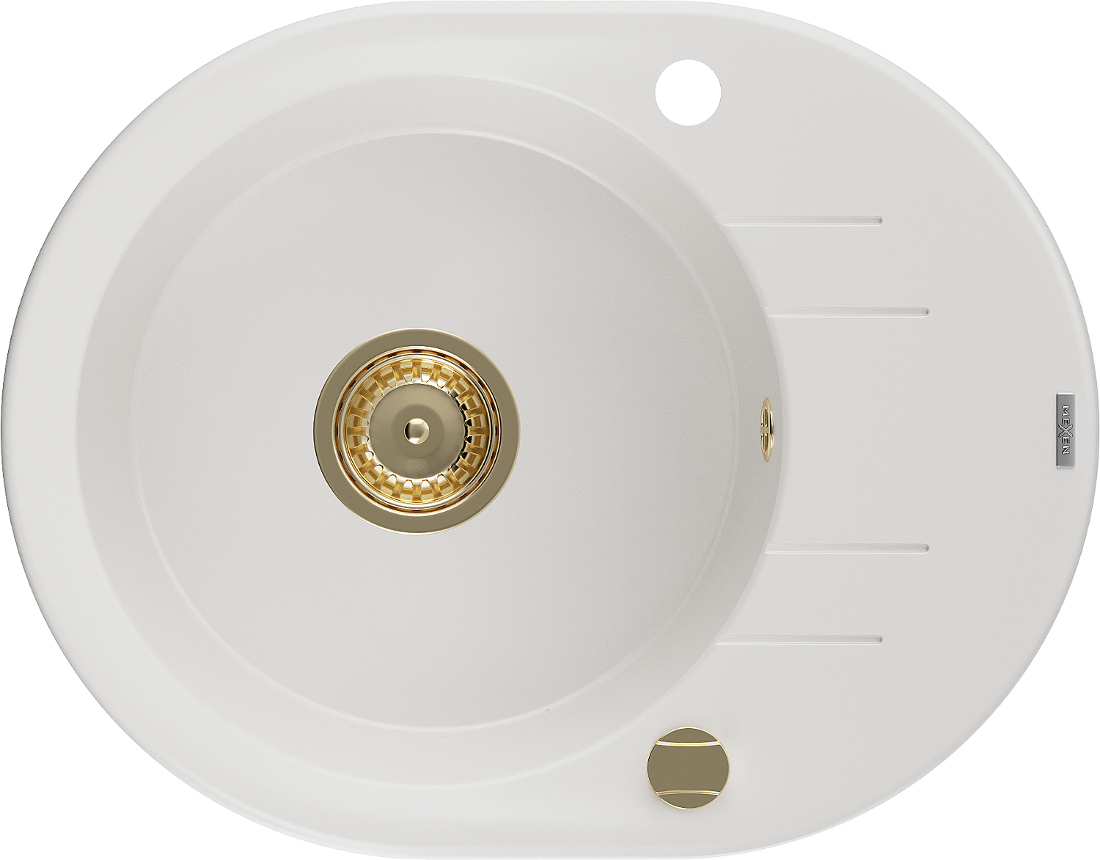 Mexen Kevin granito plautuvė 1 kamerų su drenažu 586 x 458 mm, balta, auksinė sifonas - 6517581005-20-G