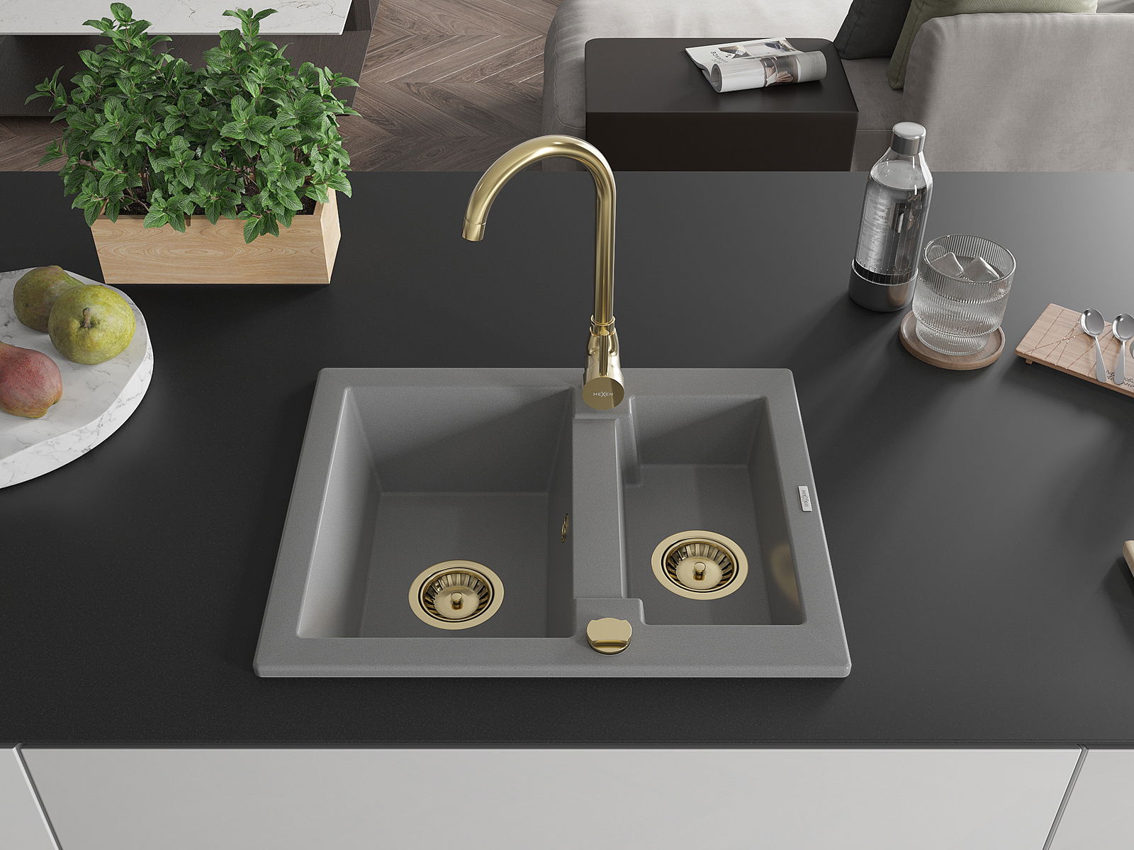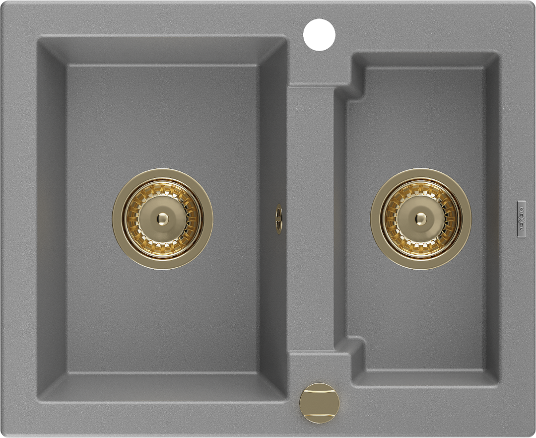 Mexen Carlos granito plautuvė 1,5 skyrių 582 x 475 mm, pilka, sifonas auksinis - 6518581500-71-G