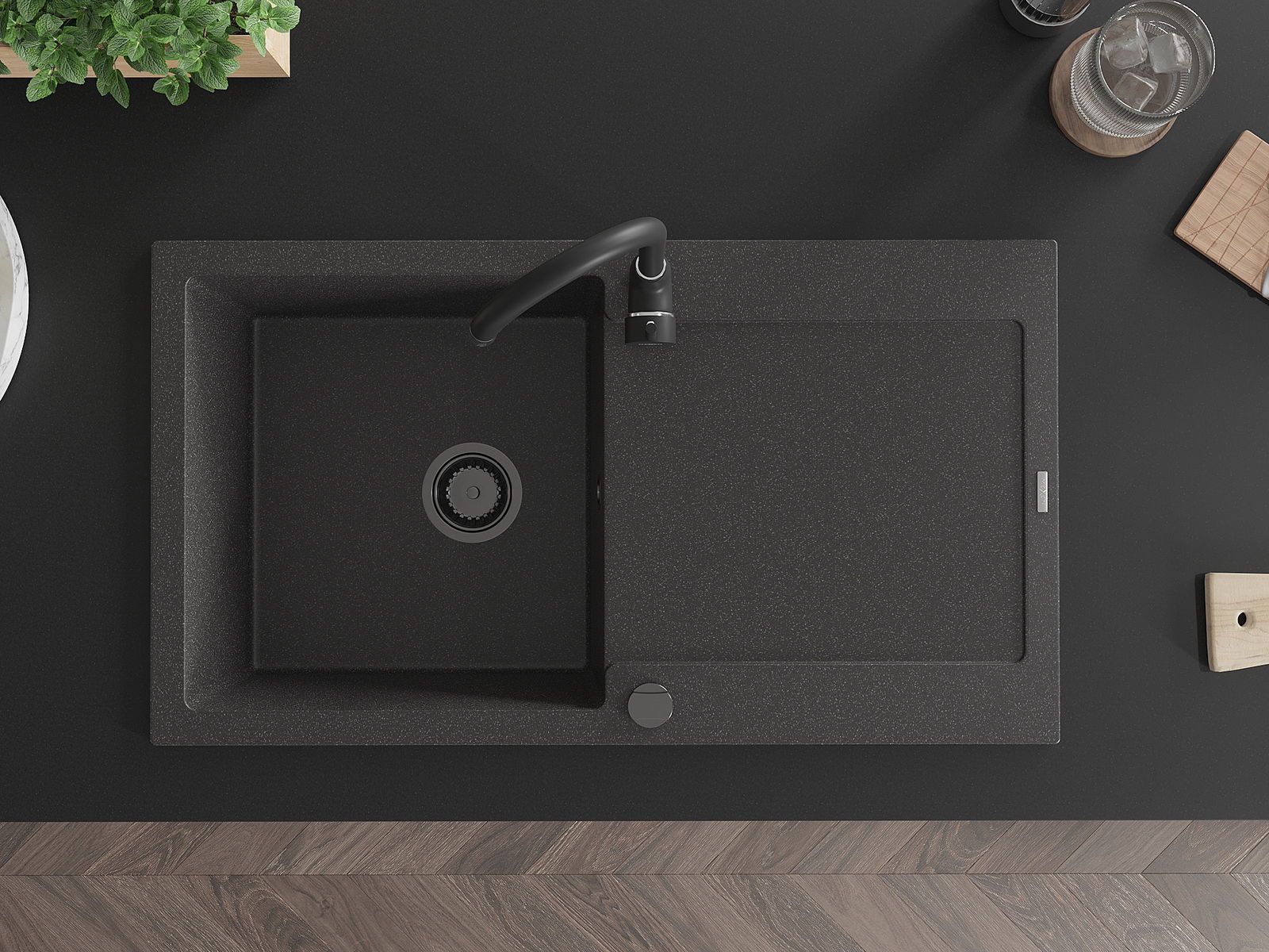 Mexen Leo granito plautuvė vienos kameros su nusausikliu 900 x 500 mm, juoda dėmėta, juodas sifonas - 6501901010-76-B