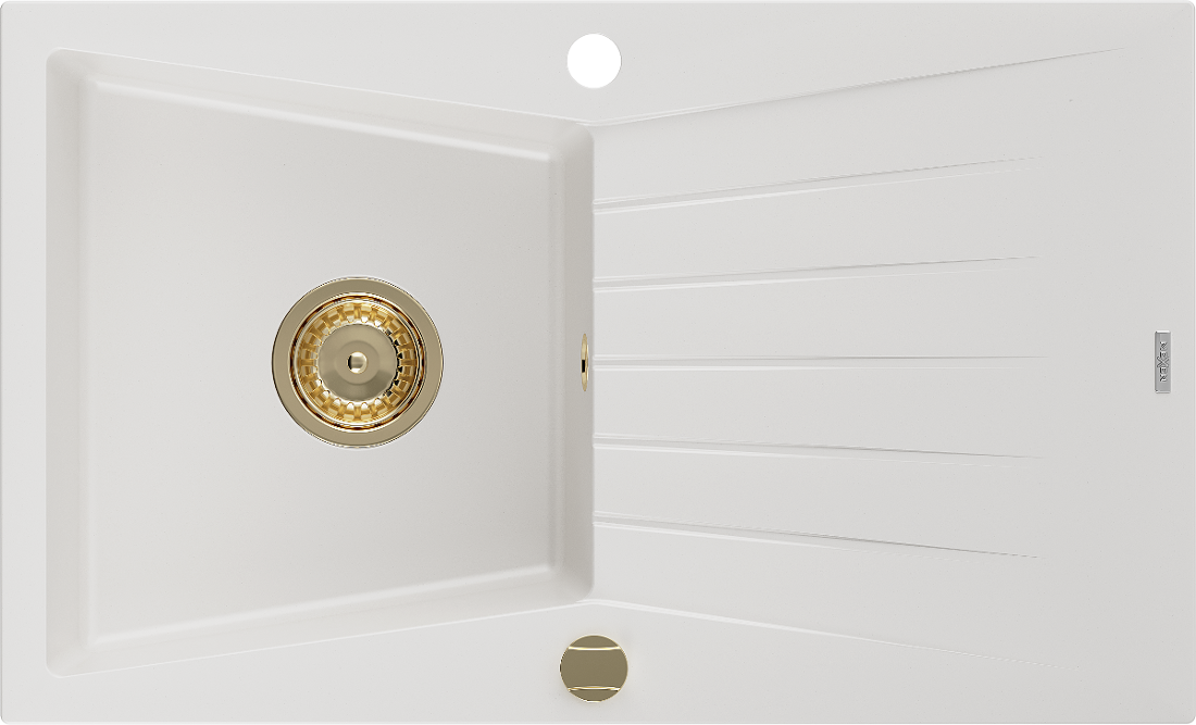 Mexen Cesar granito kriauklė 1 skyrelio su nutekėjimu 775 x 470 mm, balta, auksinis sifonas - 6514771010-20-G