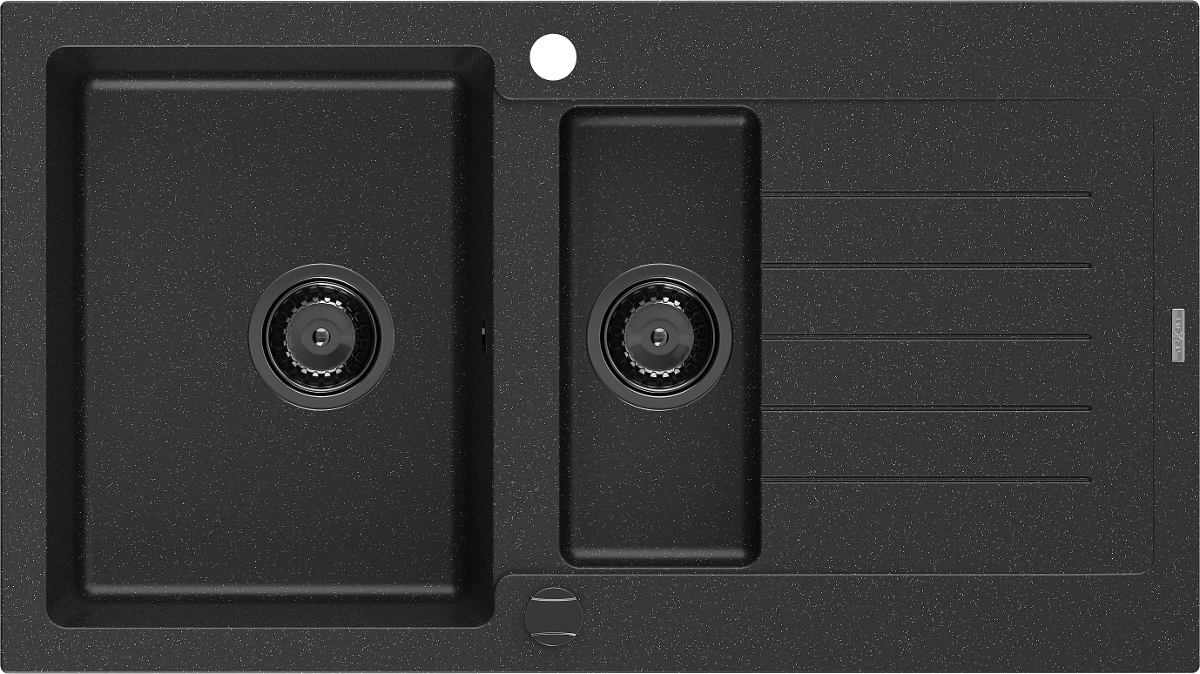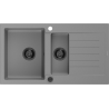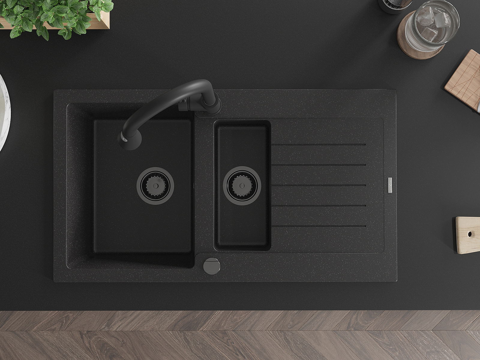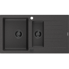 Mexen Matias granitinė plautuvė 1,5 komoros su nutekamuoju paviršiumi 900 x 505 mm juoda/sidabrinis metalikas, juodas sifonas