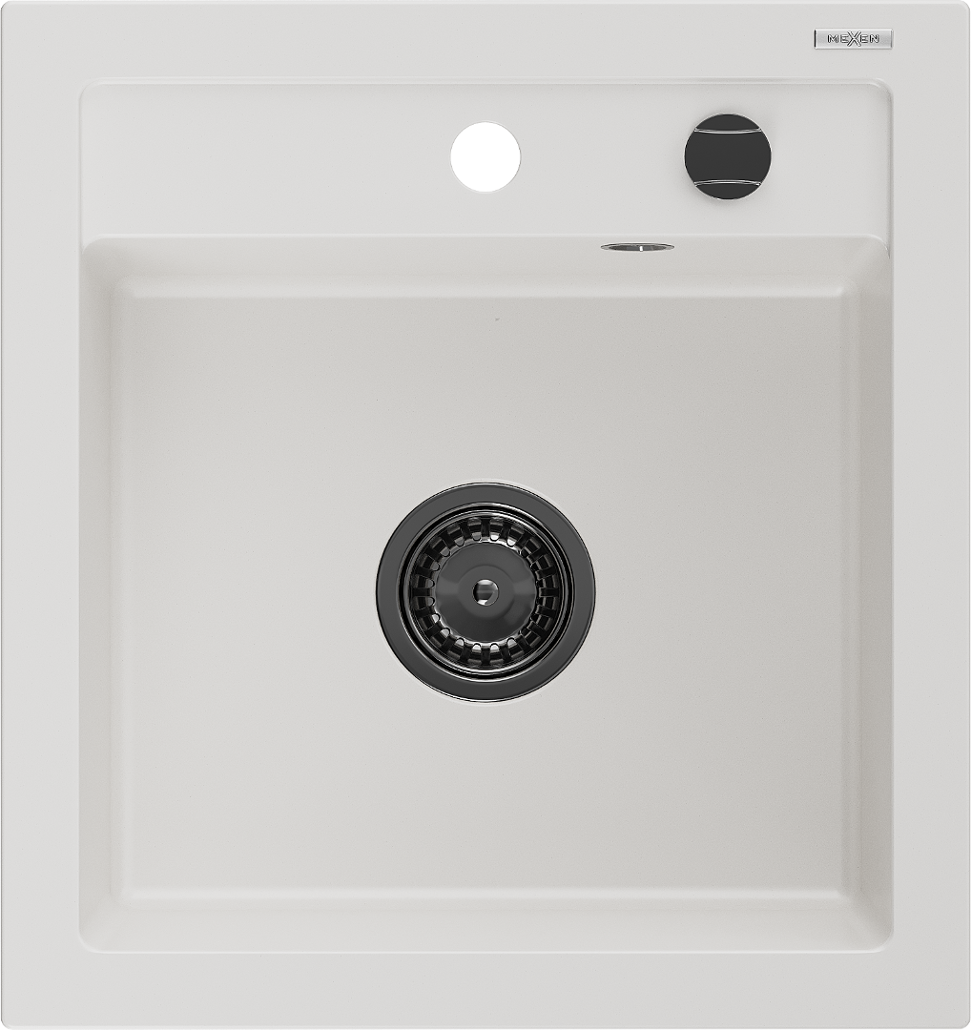 Mexen Vito granitinė plautuvė, 1 skyrius, 520 x 490 mm, balta, juodas sifonas - 6503521000-20-B