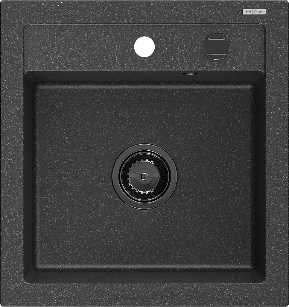 Mexen Vito granitinė vienos kameros plautuvė 520 x 490 mm, juoda dėmėta, sifonas juodas - 6503521000-76-B