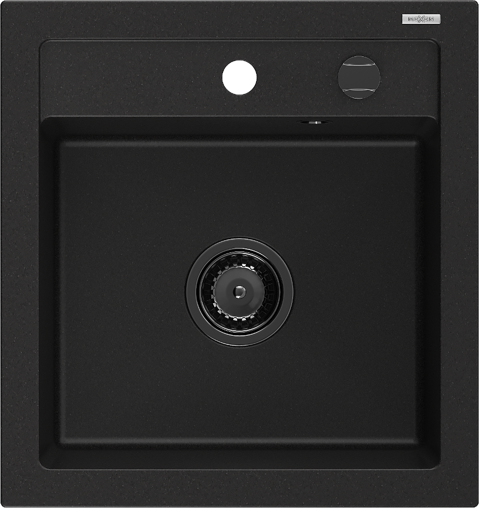 Mexen Vito granito plautuvė 1 skyrius 520 x 490 mm, juoda, juodas sifonas - 6503521000-77-B