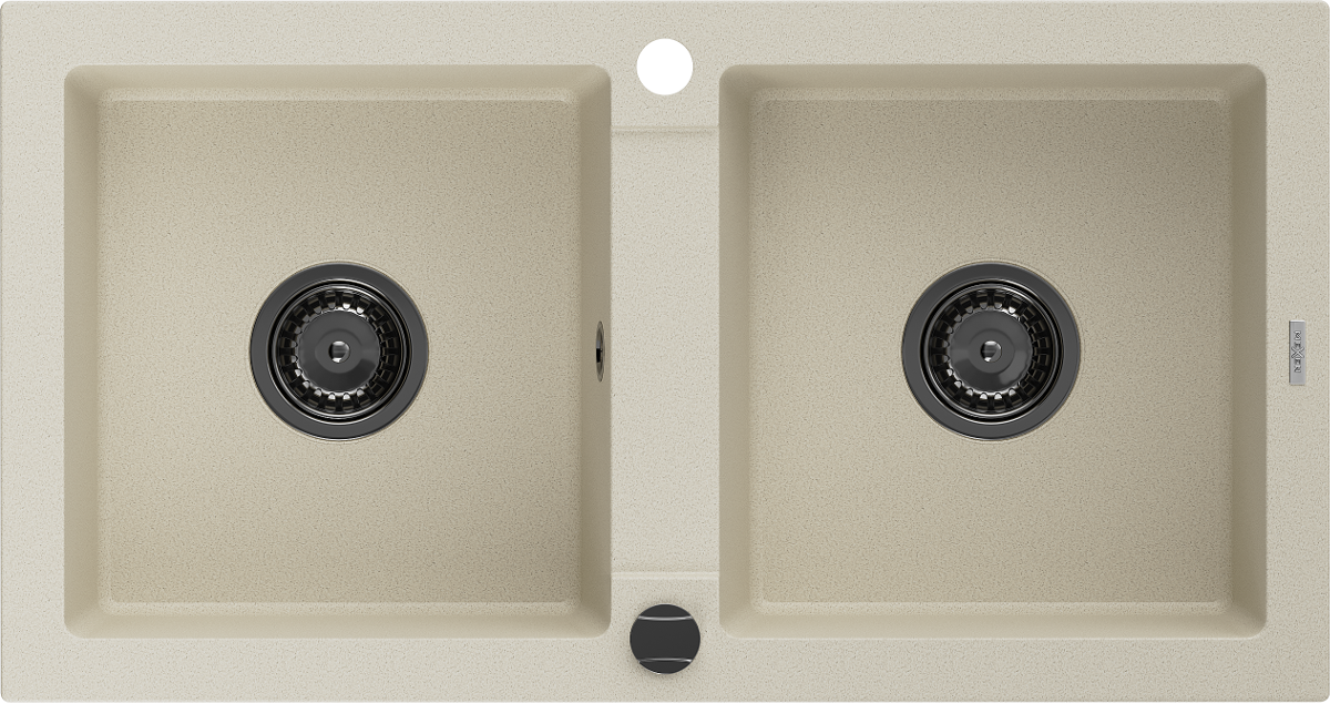 Mexen Mario granito plautuvė 2 skyrių 820 x 436 mm, smėlio spalvos, juodas sifonas - 6504822000-69-B