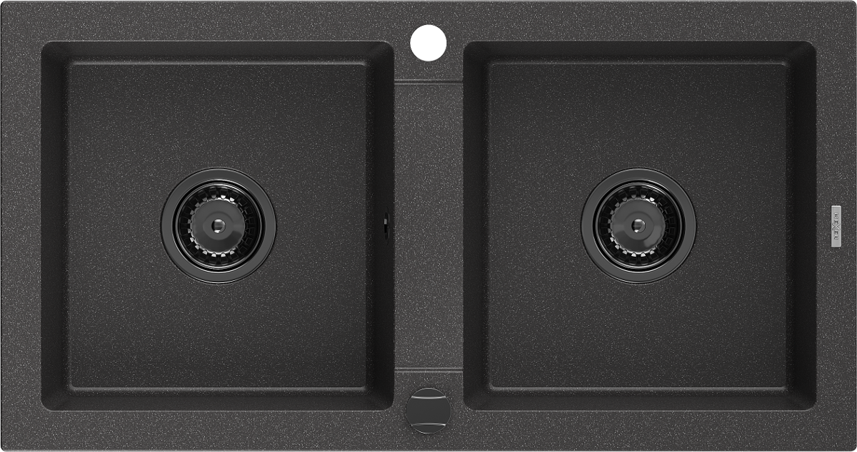 Mexen Mario granito dviejų skyrių plautuvė 820 x 436 mm, juoda taškuota, juodas sifonas - 6504822000-76-B