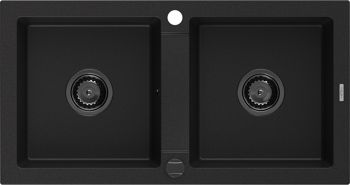 Mexen Mario granito plautuvė su dviem skyreliais 820 x 436 mm, juoda, juodas sifonas - 6504822000-77-B