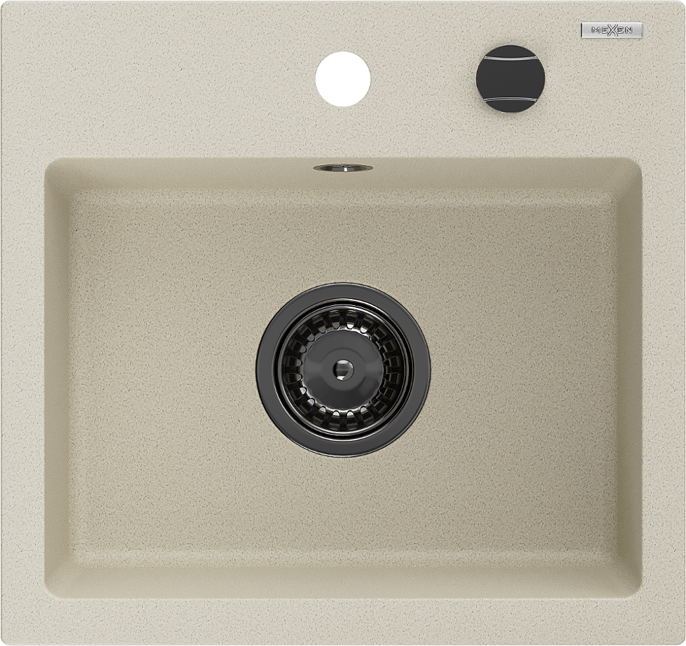 Mexen Milo granito plautuvė 1-skyriumi 435 x 410 mm, smėlio spalvos, juodas sifonas - 6505441000-69-B