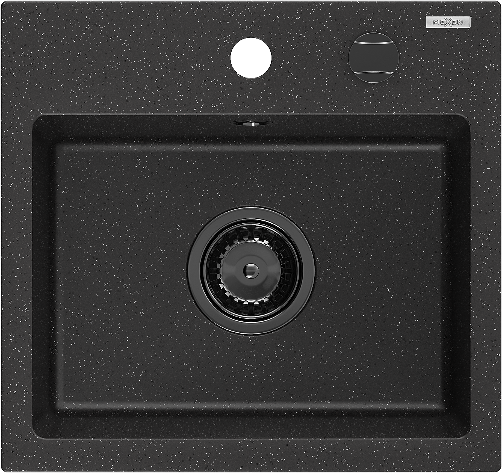 Mexen Milo granito plautuvė su viena kamera 435 x 410 mm, juoda/sidabrinė metalikas, juodas sifonas - 6505441000-73-B