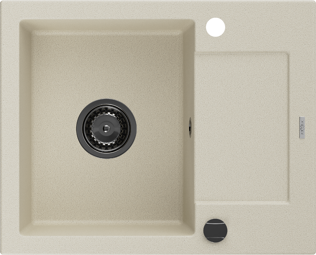 Mexen Enzo granitinis vienos plautuvės su nutekėjimu 576 x 465 mm, smėlio spalvos, juodas sifonas - 6506571005-69-B