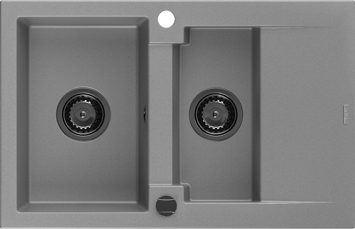 Mexen Gaspar granitinė 1,5 kamerų plautuvė su lašėjimu 737 x 475 mm, pilka, sifonas juodas - 6507731505-71-B