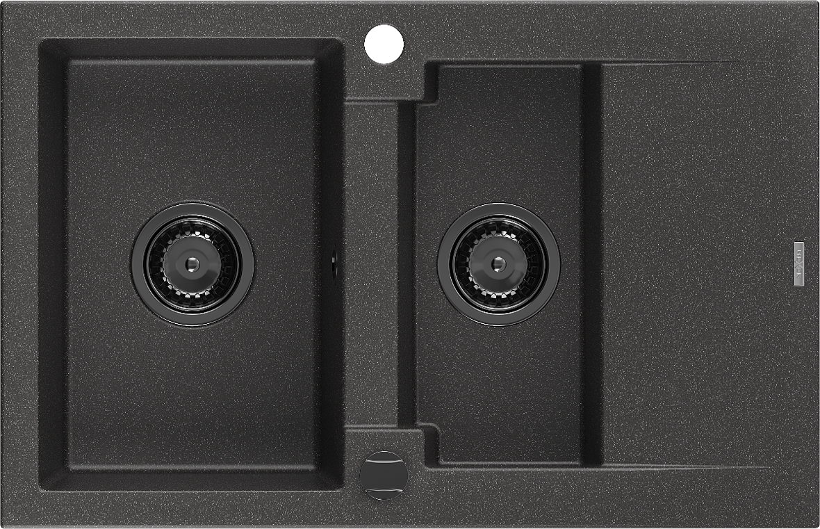 Mexen Gaspar granito plautuvė 1,5 kamerų su nutekėjimu 737 x 475 mm, juoda taškuota, sifonas juodas - 6507731505-76-B