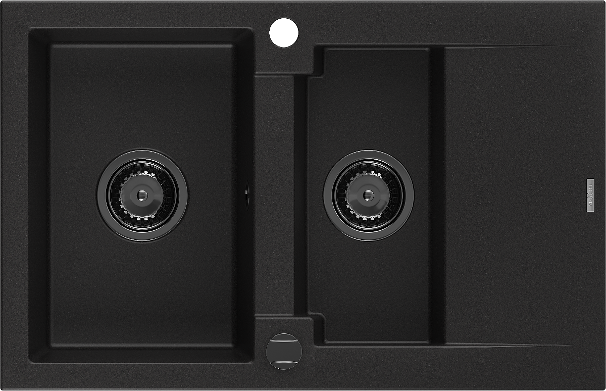 Mexen Gaspar granitinis plautuvė 1,5 skyriumi su nuvarvėjimo lentyna 737 x 475 mm, juoda, juodas sifonas - 6507731505-77-B