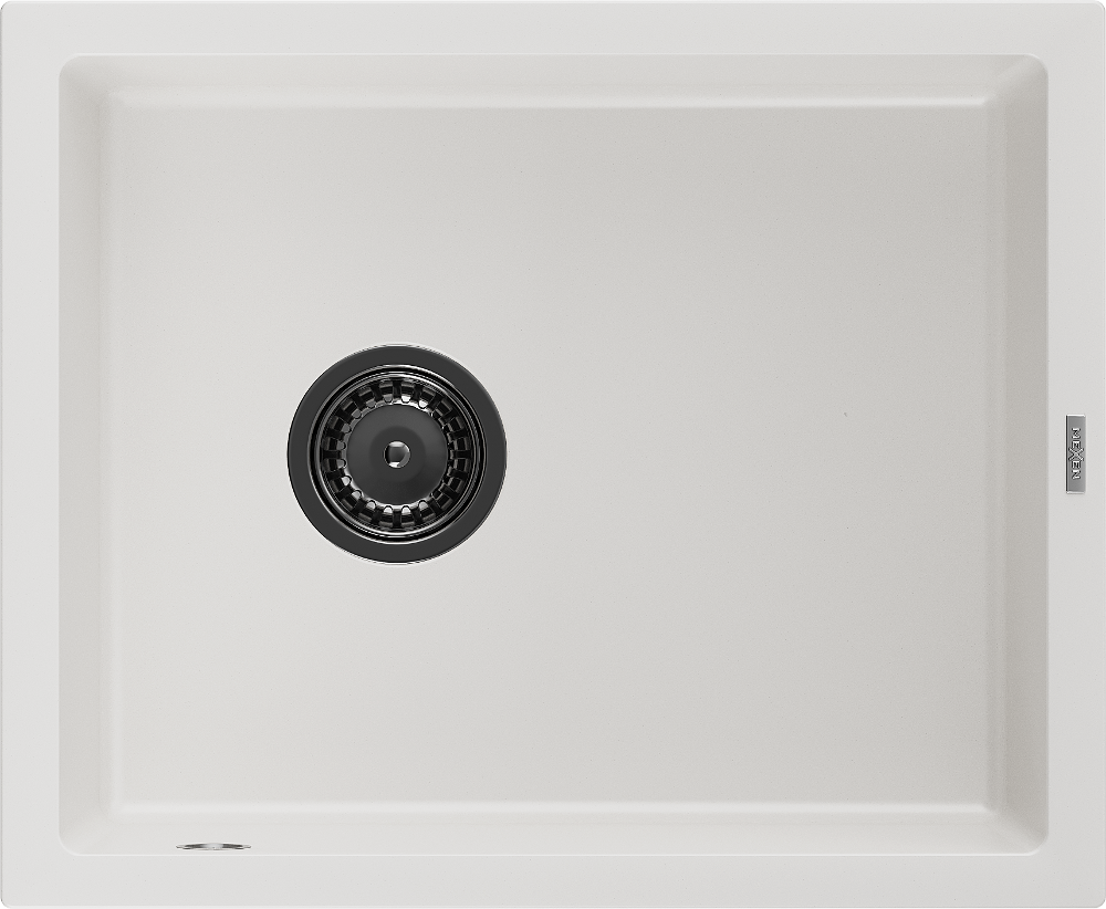 Mexen Pedro granito plautuvė 1-dubenų 560 x 460 mm, balta, juodas sifonas - 6508561000-20-B