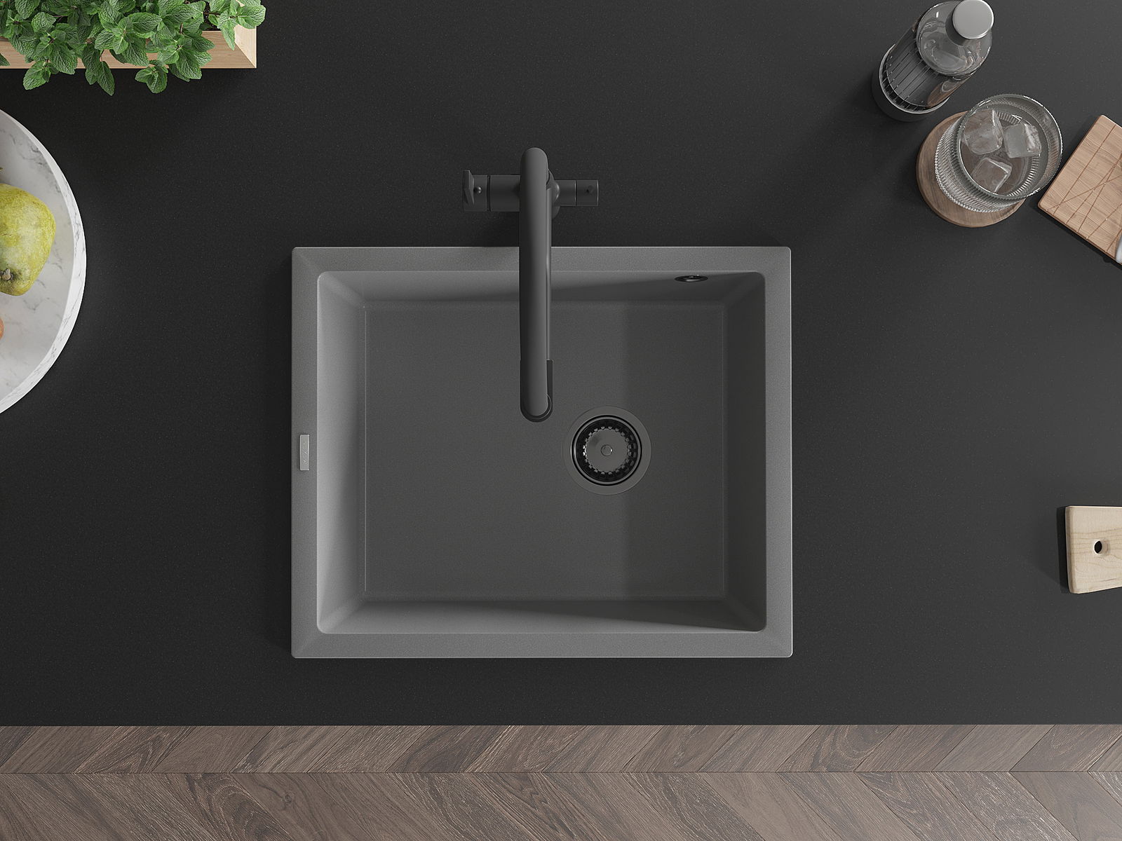 Mexen Pedro granito plautuvė 1 skyrius 560 x 460 mm, pilka, sifonas juodas - 6508561000-71-B