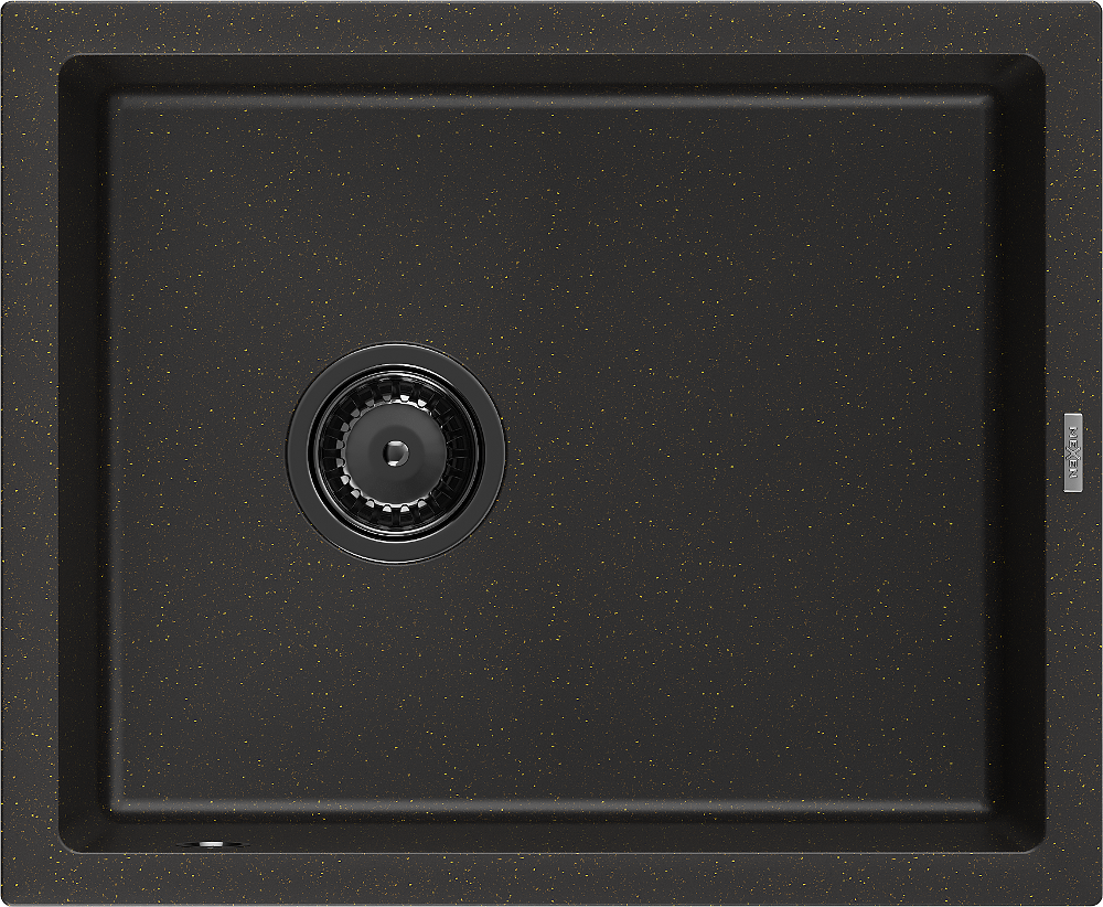 Mexen Pedro granito plautuvė su viena kamera 560 x 460 mm, juoda/auksinė metalika, juodas sifonas - 6508561000-75-B