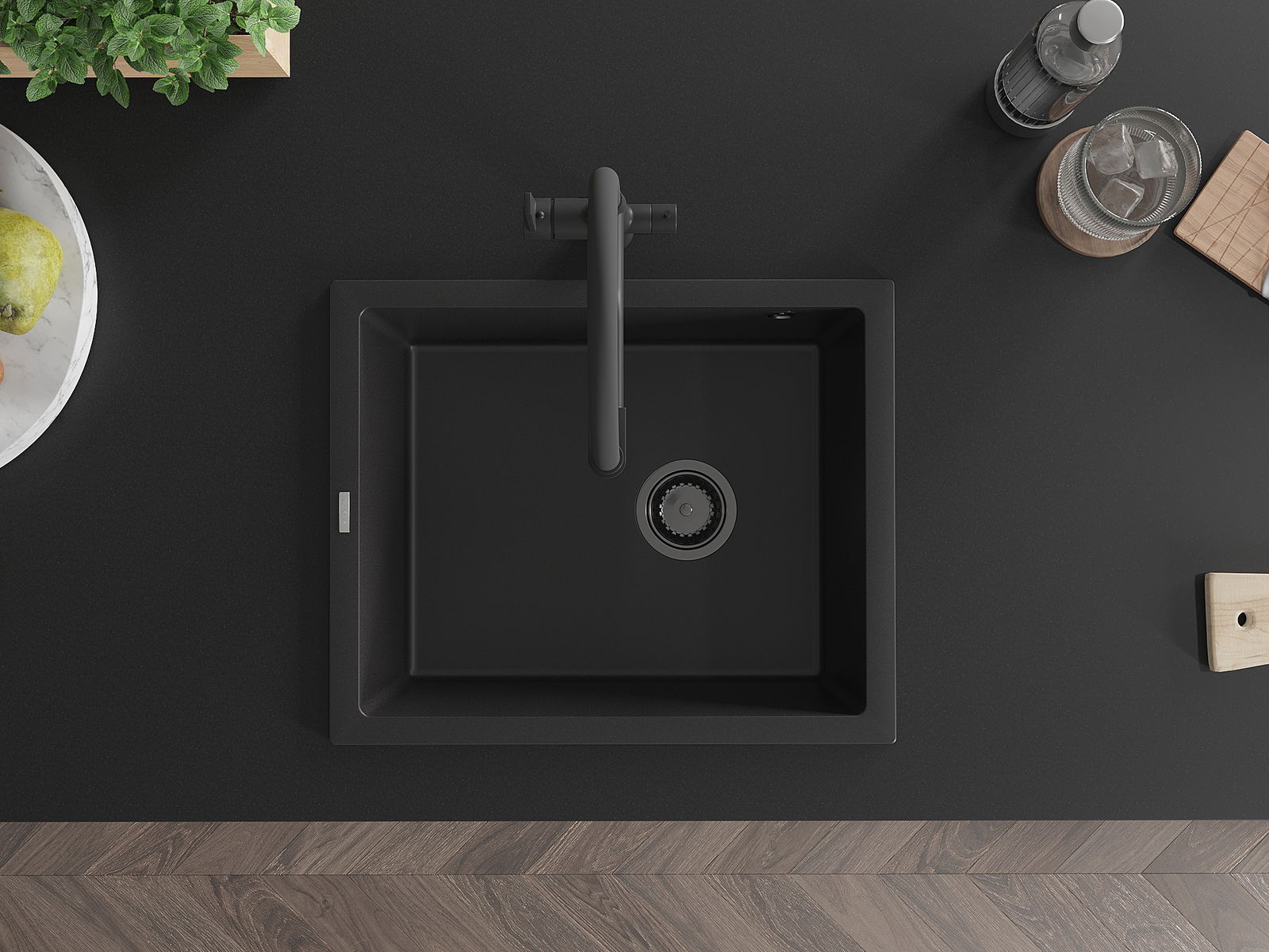 Mexen Pedro granito plautuvė 1 kameros 560 x 460 mm, juoda, juodas sifonas - 6508561000-77-B