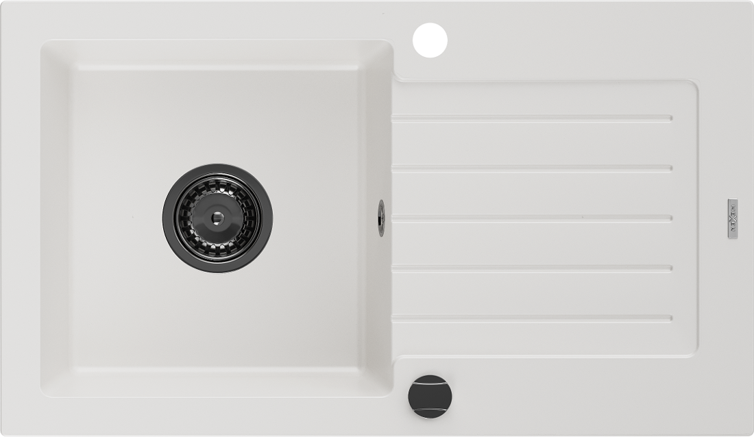 Mexen Pablo granitinė virtuvės kriauklė su viena kamera ir nusausinimo sritimi 752 x 436 mm, balta, juodas sifonas - 6510751010?