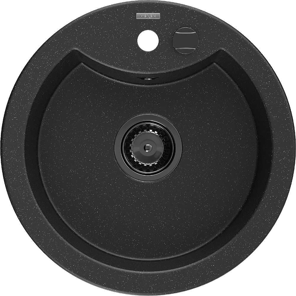 Mexen Diego granitinė vienos kameros kriauklė 488 x 480 mm, juoda/sidabrinė metalinė, juodas sifonas - 6512481000-73-B