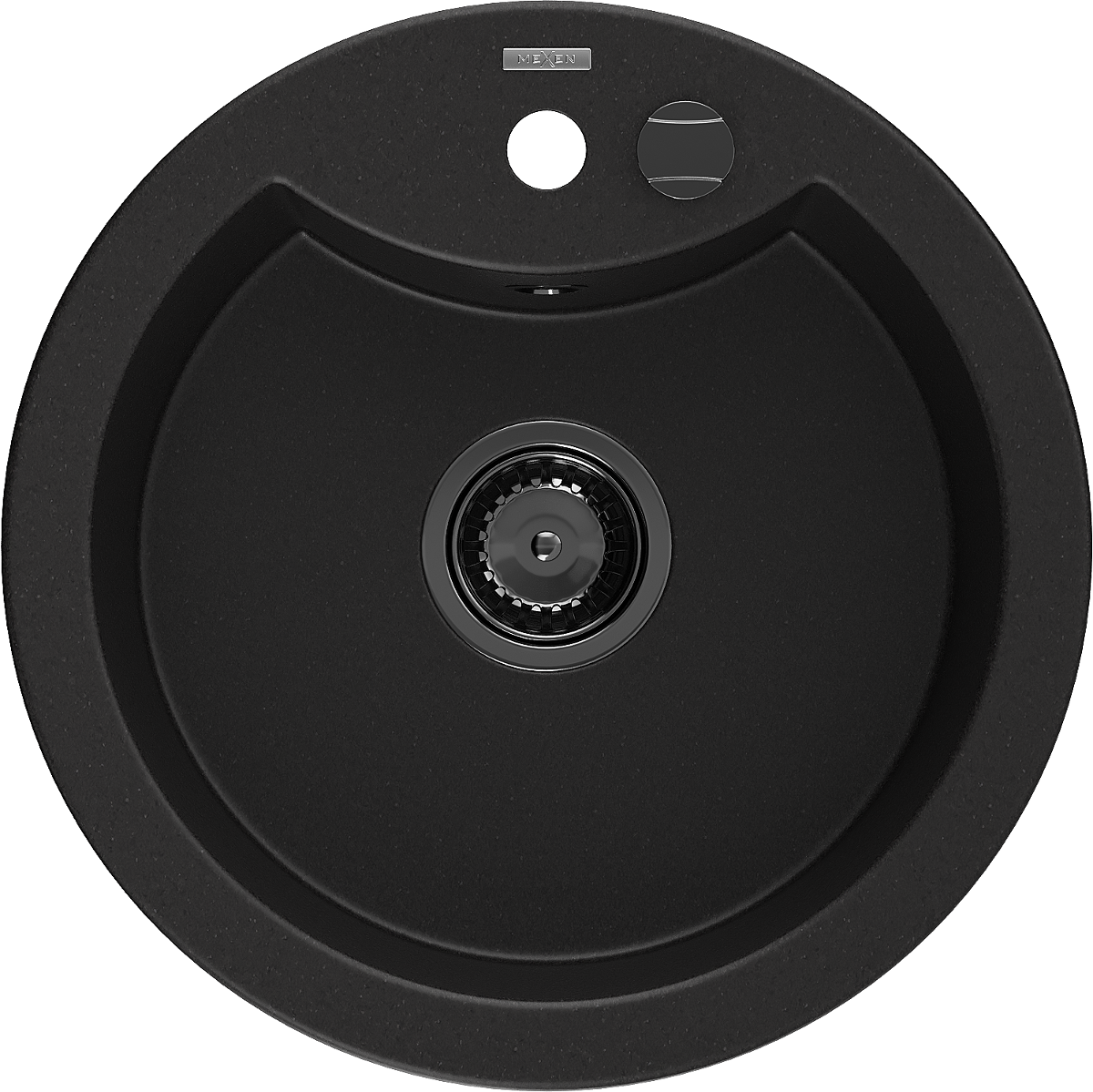Mexen Diego akmens masės vienos dalies plautuvė 488 x 480 mm, juoda, sifonas juodas - 6512481000-77-B