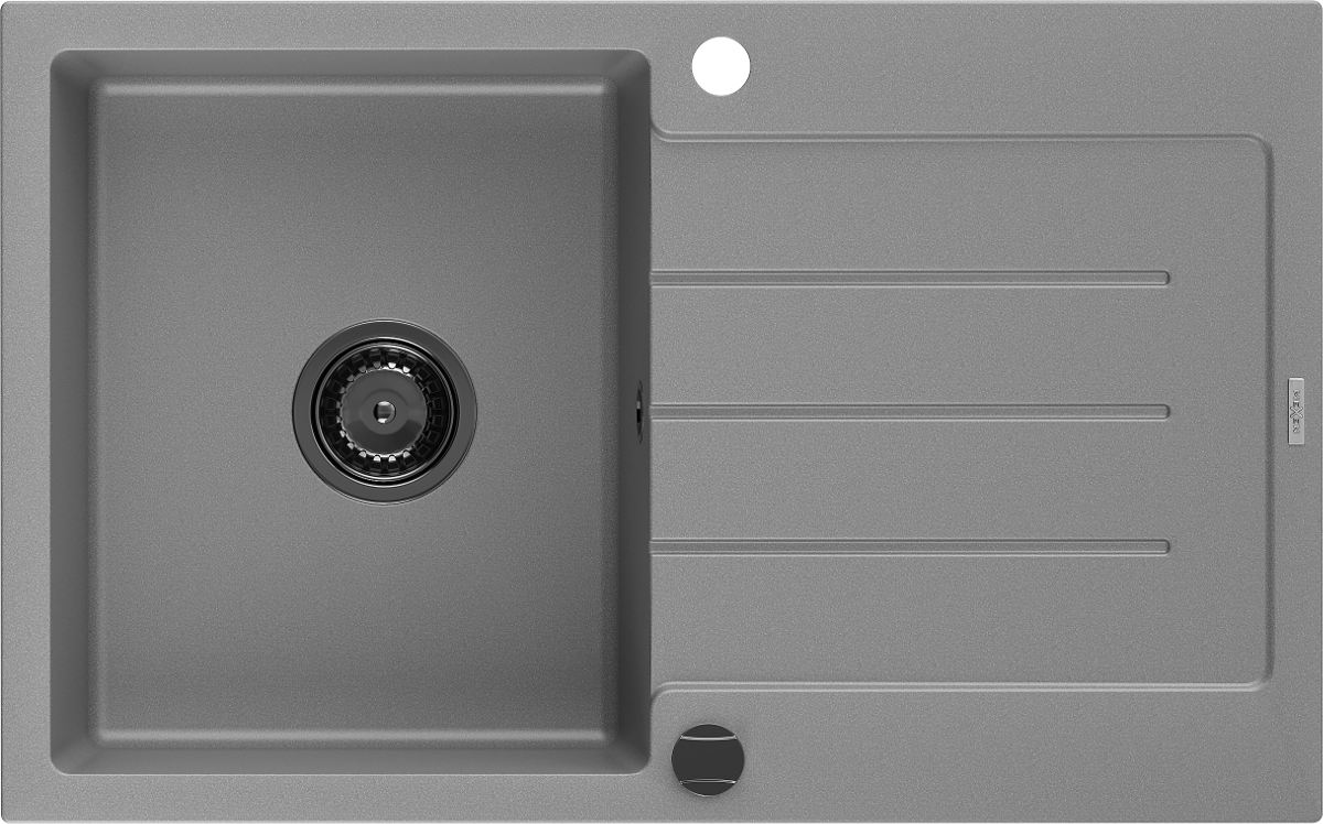 Mexen Bruno granito plautuvė 1-dubens su nusausinimo zona 795 x 495 mm, pilka, juodas sifonas - 6513791010-71-B